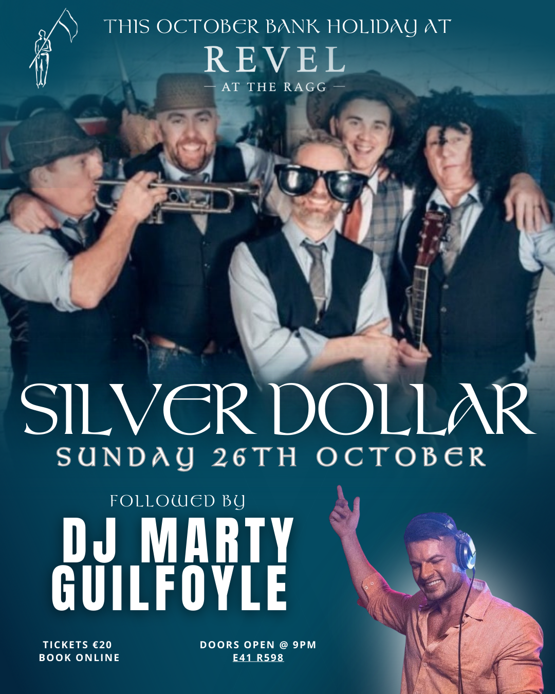 Join us on Sunday, 26th October for a standout night of live music at Revel at The Ragg. Local favourites Silver Dollar take the stage for a full live set, followed by a late-night DJ set from Marty Guilfoyle.
